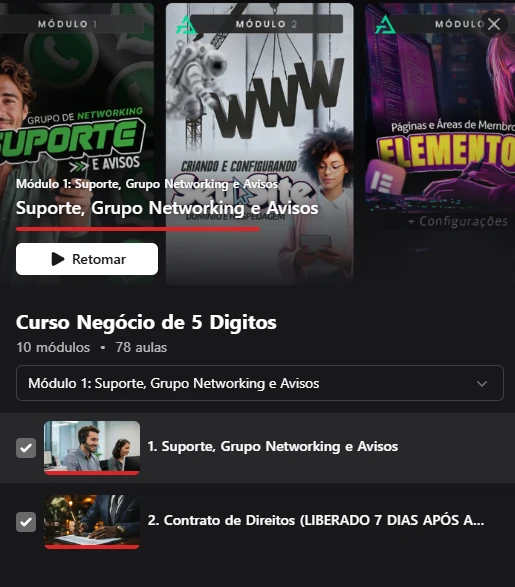 Todos os Produtos possuem Áreas de membros Prontas bastando apenas compartilhar o link e a senha com o Cliente. Também acampanha os Arquivos soltos para Você subir em qualquer marketplace caso desejar como hotmart,kiwify entre outros.